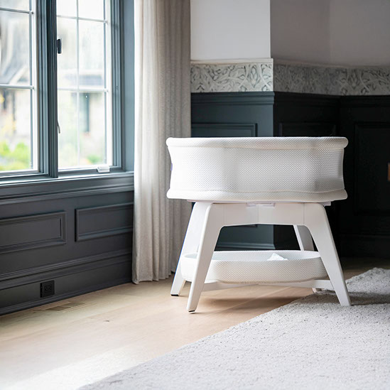 We know that style is important to our customers. We’ve designed the Evi Smart Bassinet in a neutral color palette with a high-end look to match nicely with parent’s bedroom decor, the baby’s nursery, and just about any room in the house! Additionally, the Evi Bassinet is built to last with its solid wood construction, providing a secure and stable base. The bed is wrapped in comfortable, high-end fabric and provides super soft bamboo fabric interior nesting place for baby to lay their head.
