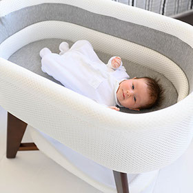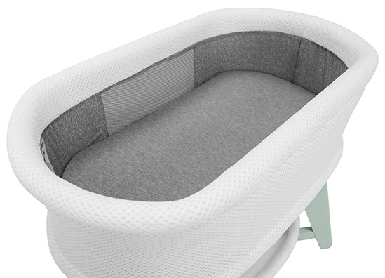 The large sleeping area features a deep design with higher sides than traditional bassinets for enhanced security and peace of mind.