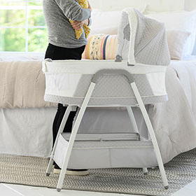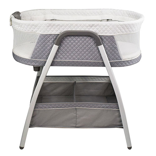 Whether in use as a portable bed or bassinet, the multi-use Journey spares no detail when it comes to style for your home. The traditional shape is enhanced by quilted premium fabrics, engaging sounds and vibration and sleek storage to keep your space tidy.